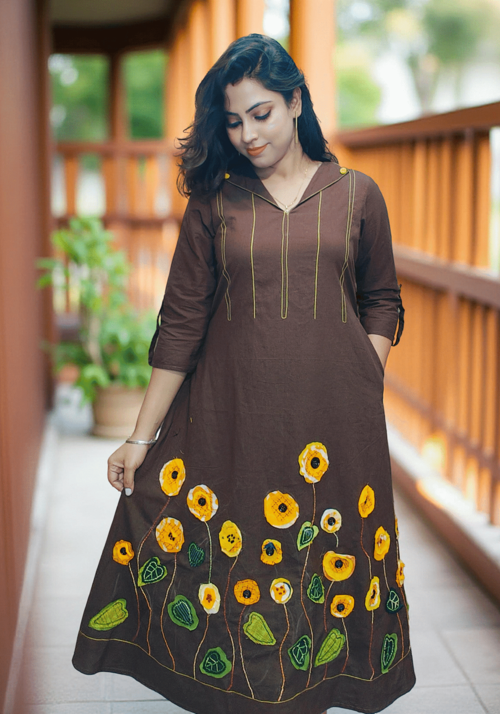 A vibrant and eye-catching one-piece dress designed to bring out your cheerful personality. Crafted from soft, breathable fabric, this dress features a lively blend of colors in a stylish pattern that radiates energy and confidence. Perfect for brunches, casual outings, or beach vacations — pair it with minimal accessories for a playful yet graceful look."